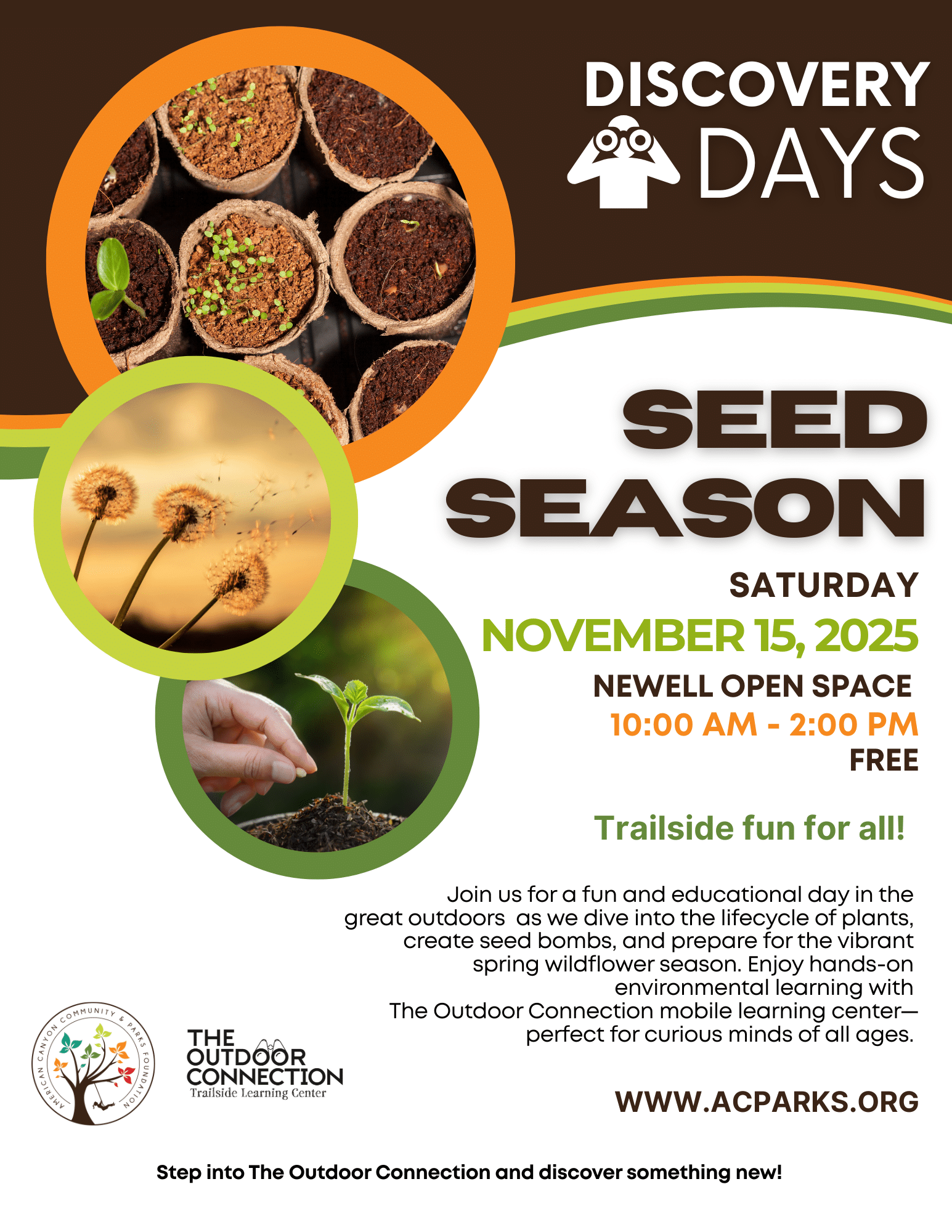 Join us for a fun and educational day in the great outdoors as we dive into the lifecycle of plants, create seed bombs, and prepare for the vibrant spring wildflower season at Newell Open Space Preserve. Enjoy hands-on environmental learning with The Outdoor Connection mobile learning center—perfect for curious minds of all ages. Don’t miss this opportunity to connect with nature and your community!